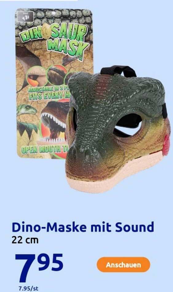 Sehen Sie sich jetzt das Dino-Maske mit Sound 22 cm Angebot im Action Prospekt an. Dieses Angebot ist gültig von 15.10.2025 bis 21.10.2025.