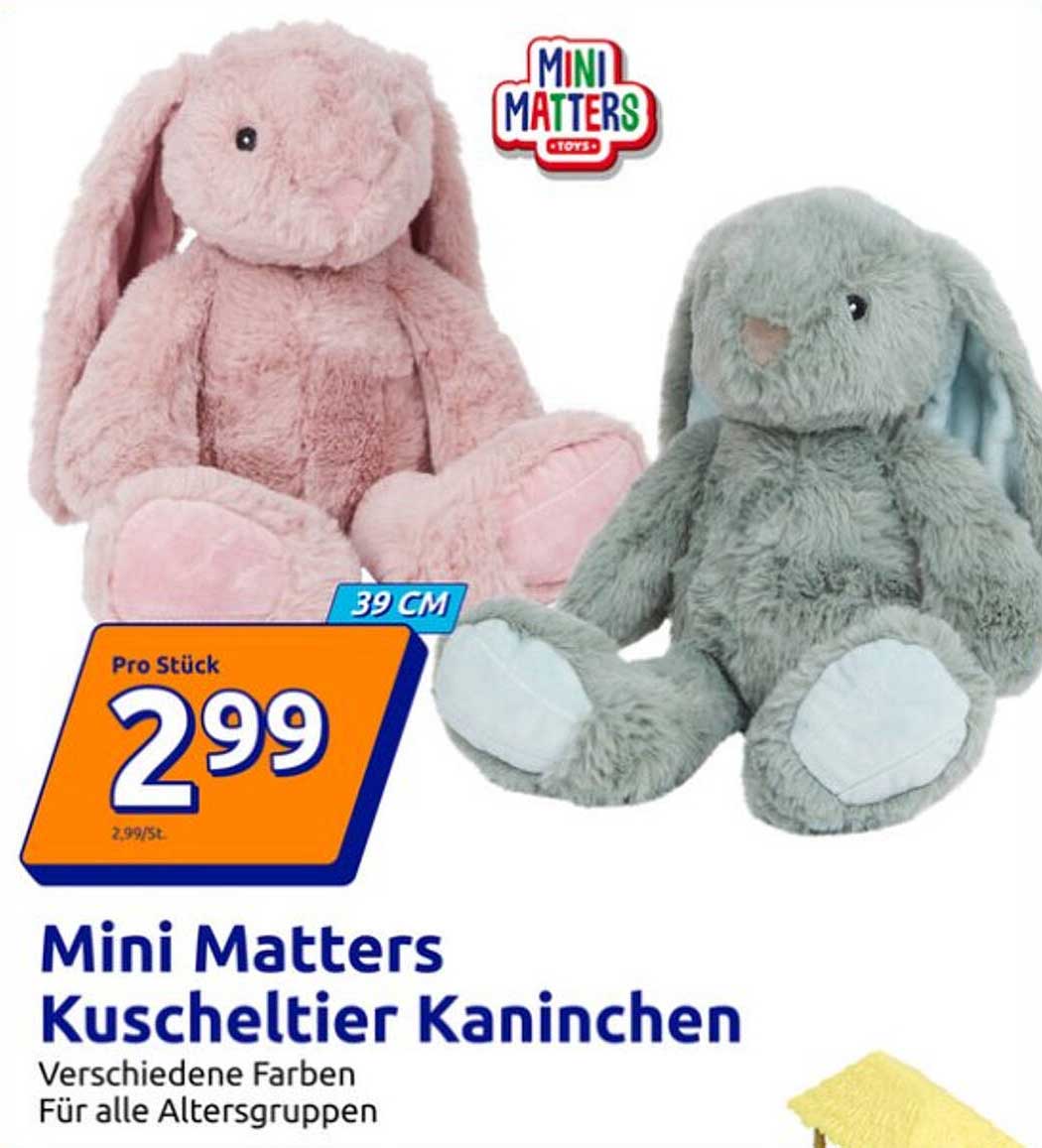 Sehen Sie sich jetzt das Mini Matters Kuscheltier Kaninchen Angebot im Action Prospekt an. Dieses Angebot ist gültig von 19.11.2025 bis 25.11.2025.