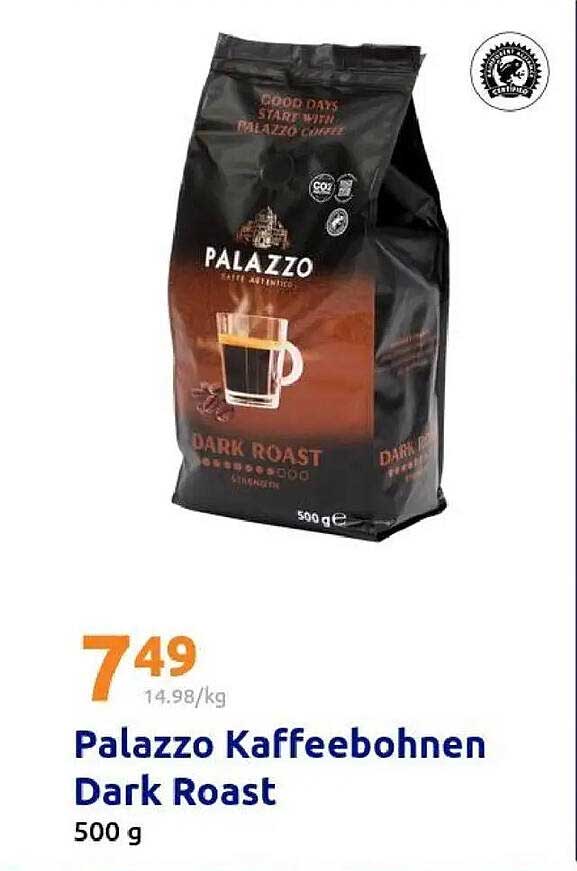 Bereiten Sie sich auf ein unvergleichliches Kaffee-Erlebnis mit den Palazzo Kaffeebohnen Dark Roast vor. Dieser exquisite Kaffee stammt aus sorgfältig ausgewählten Bohnen, die für ihren reichen, vollmundigen Geschmack bekannt sind. Ein guter Start in den Tag beginnt mit einer Tasse frisch gebrühtem Palazzo Kaffee. Dieses Angebot, gültig vom 01. bis 07. Oktober 2025, bietet Ihnen die Möglichkeit, diesen Premium-Kaffee zu einem unwiderstehlichen Preis zu genießen.