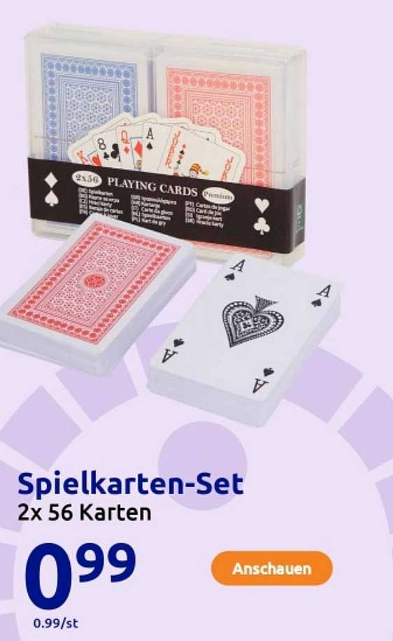 Sehen Sie sich jetzt das Spielkarten-Set 2x 56 Karten Angebot im Action Prospekt an. Dieses Angebot ist gültig von 01.10.2025 bis 07.10.2025.