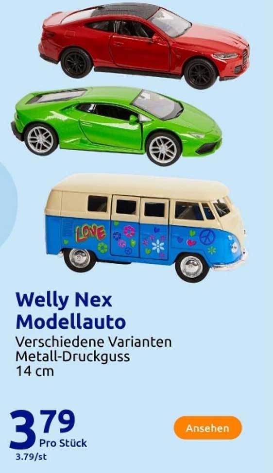 Entdecken Sie das großartige Welly Nex Modellauto Angebot im neuesten Action Prospekt. Neben diesem Angebot finden Sie noch viele weitere attraktive Rabatte. Sie können das Welly Nex Modellauto einfach online über die Action Website bestellen oder in einem Geschäft in Ihrer Nähe kaufen.