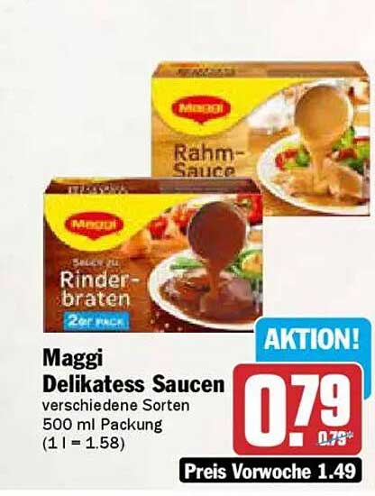 Sehen Sie sich jetzt das Maggi Delikatess Saucen 500 ml Packung – Zwei Sorten im Angebot Angebot im AEZ Prospekt an. Dieses Angebot ist gültig von 24.11.2025 bis 29.11.2025.