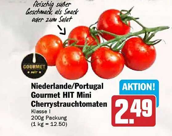 Sehen Sie sich jetzt das Niederlande/Portugal Gourmet HIT Mini Cherrystrauchtomaten Angebot im AEZ Prospekt an. Dieses Angebot ist gültig von 03.11.2025 bis 08.11.2025.