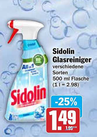 Sehen Sie sich jetzt das Sidolin Glasreiniger verschiedene Sorten 500 ml Flasche Angebot im AEZ Prospekt an. Dieses Angebot ist gültig von 28.07.2025 bis 03.08.2025.