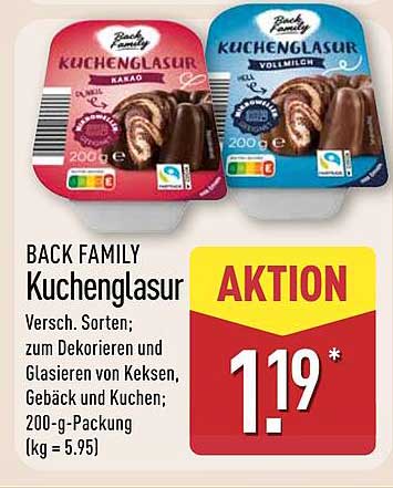 Der reguläre Preis einer 200-g-Packung liegt bei 5,95 €, aber aktuell können Sie die BACK FAMILY Kuchenglasur für nur 1,19 € erwerben. Das ist eine Ersparnis von über 80%! Solch ein attraktives Angebot sollte man sich nicht entgehen lassen – ideal, um gleich ein paar Packungen für die nächste Back-Session einzukaufen.