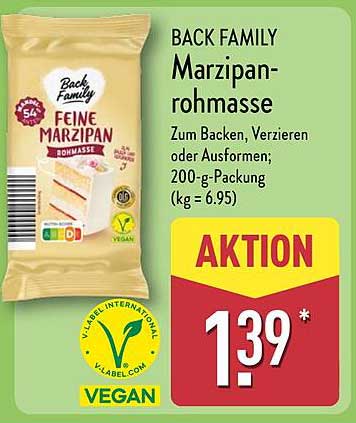 Sehen Sie sich jetzt das BACK FAMILY Marzipanrohmasse 200-g-Packung Angebot im Aldi Nord Prospekt an. Dieses Angebot ist gültig von 31.03.2025 bis 05.04.2025.