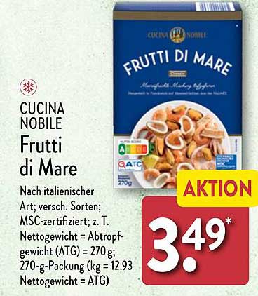 Sehen Sie sich das Cucina Nobile Frutti Di Mare Angebot bei Aldi Nord an! Dieses fantastische Angebot ist jetzt im neuesten Aldi Nord Prospekt verfügbar. Nutzen Sie diese Chance und sparen Sie viel bei Ihrem Einkauf.