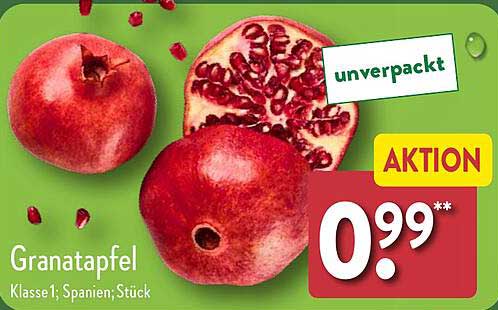 Sehen Sie sich das Granatapfel Angebot bei Aldi Nord an! Dieses fantastische Angebot ist jetzt im neuesten Aldi Nord Prospekt verfügbar. Nutzen Sie diese Chance und sparen Sie viel bei Ihrem Einkauf.