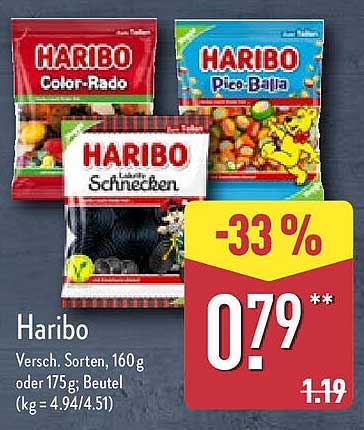 Entdecken Sie das großartige Haribo Angebot im neuesten Aldi Nord Prospekt. Neben diesem Angebot finden Sie noch viele weitere attraktive Rabatte. Sie können das Haribo einfach online über die Aldi Nord Website bestellen oder in einem Geschäft in Ihrer Nähe kaufen.