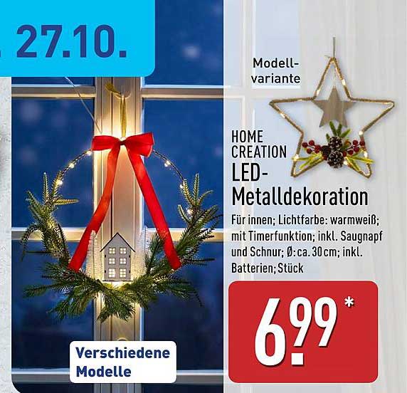 Sehen Sie sich jetzt das HOME CREATION LED-Metalldekoration Angebot im Aldi Nord Prospekt an. Dieses Angebot ist gültig von 27.10.2025 bis 02.11.2025.