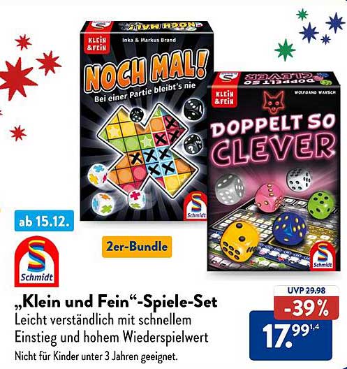 Sehen Sie sich jetzt das „Klein und Fein“-Spiele-Set Angebot im Aldi Nord Prospekt an. Dieses Angebot ist gültig von 16.12.2024 bis 21.12.2024.