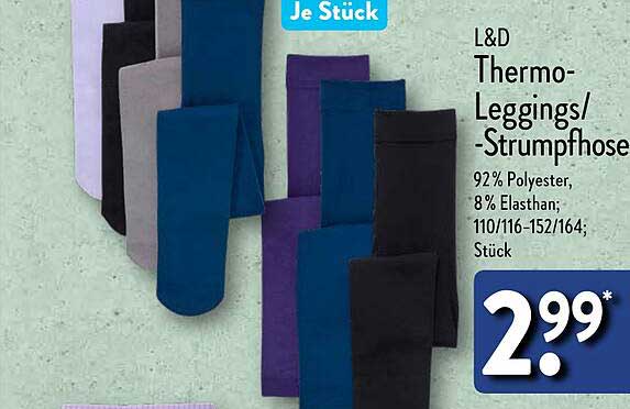 Sehen Sie sich das L&D Thermo-Leggings/-Strumpfhose Angebot bei Aldi Nord an! Dieses fantastische Angebot ist jetzt im neuesten Aldi Nord Prospekt verfügbar. Nutzen Sie diese Chance und sparen Sie viel bei Ihrem Einkauf.