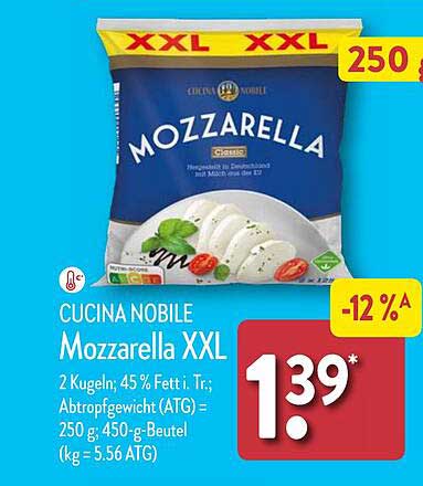 Sehen Sie sich das Mozzarella Xxl Angebot bei Aldi Nord an! Dieses fantastische Angebot ist jetzt im neuesten Aldi Nord Prospekt verfügbar. Nutzen Sie diese Chance und sparen Sie viel bei Ihrem Einkauf.