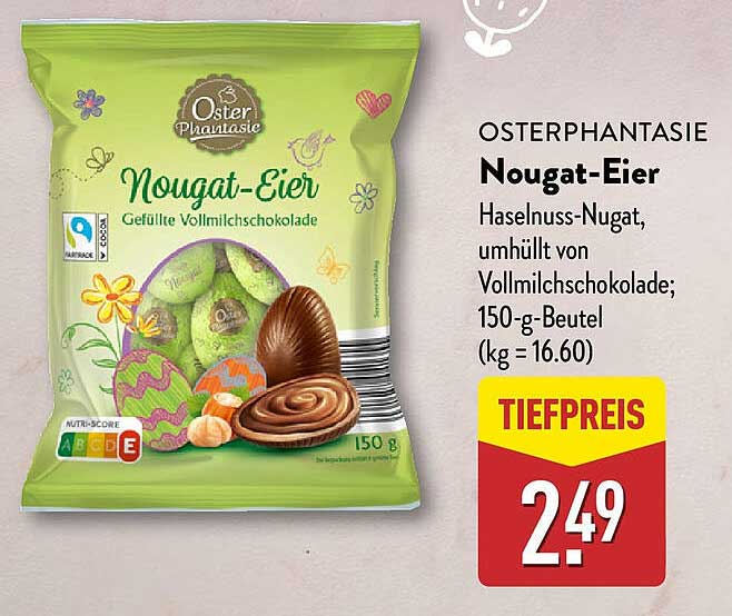 Sehen Sie sich jetzt das Nougat-Eier Angebot im Aldi Nord Prospekt an. Dieses Angebot ist gültig von 16.03.2025 bis 17.04.2025.