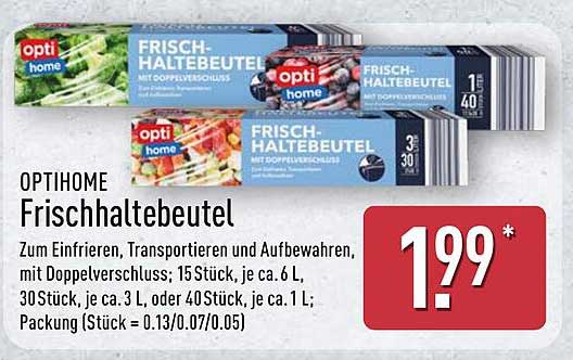 Sehen Sie sich jetzt das OPTIMHOME Frischhaltebeutel Angebot im Aldi Nord Prospekt an. Dieses Angebot ist gültig von 10.11.2025 bis 15.11.2025.
