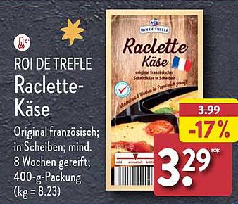 Entdecken Sie das großartige Raclette-Käse Angebot im neuesten Aldi Nord Prospekt. Neben diesem Angebot finden Sie noch viele weitere attraktive Rabatte. Sie können das Raclette-Käse einfach online über die Aldi Nord Website bestellen oder in einem Geschäft in Ihrer Nähe kaufen.