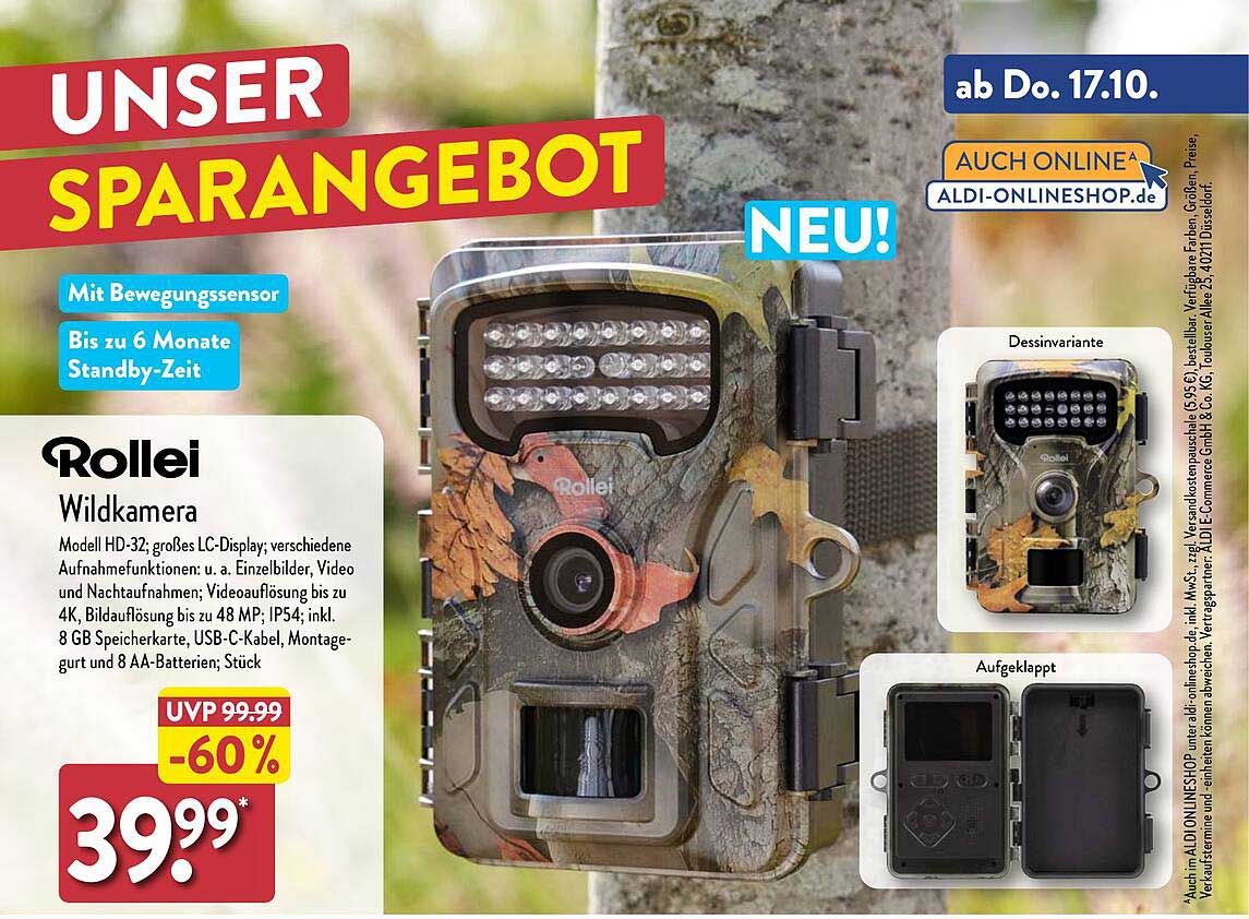 Sehen Sie sich das Rollei Wildkamera Angebot bei Aldi Nord an! Dieses fantastische Angebot ist jetzt im neuesten Aldi Nord Prospekt verfügbar. Nutzen Sie diese Chance und sparen Sie viel bei Ihrem Einkauf.