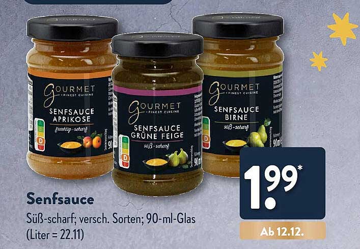 Möchten Sie sofort informiert werden, sobald das Senfsauce im Angebot ist? Melden Sie sich für unsere Angebots-Benachrichtigungen an. So erhalten Sie eine Benachrichtigung, sobald das Produkt zu einem günstigen Preis verfügbar ist.