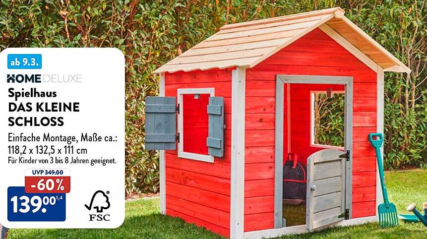 Sehen Sie sich das Spielhaus Das Kleine Schloss Angebot bei Aldi Nord an! Dieses fantastische Angebot ist jetzt im neuesten Aldi Nord Prospekt verfügbar. Nutzen Sie diese Chance und sparen Sie viel bei Ihrem Einkauf.