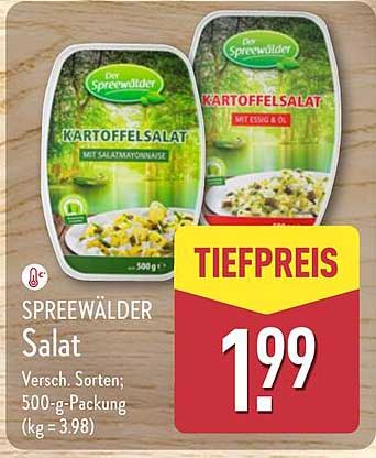 Sehen Sie sich jetzt das SPREEWÄLDER Kartoffelsalat 500-g-Packung - Verschiedene Sorten Angebot im Aldi Nord Prospekt an. Dieses Angebot ist gültig von 14.04.2025 bis 19.04.2025.