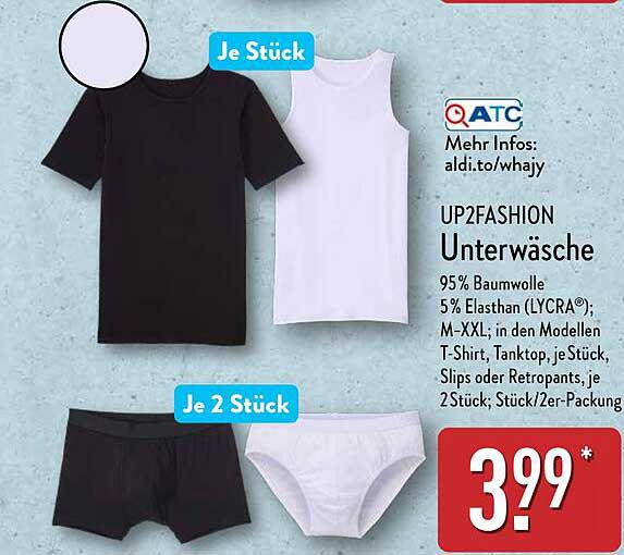 Sehen Sie sich das Up2Fashion Unterwäsche Angebot bei Aldi Nord an! Dieses fantastische Angebot ist jetzt im neuesten Aldi Nord Prospekt verfügbar. Nutzen Sie diese Chance und sparen Sie viel bei Ihrem Einkauf.