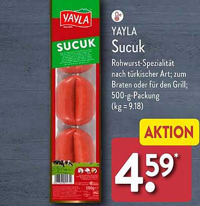 Sehen Sie sich das Yayla Sucuk Angebot bei Aldi Nord an! Dieses fantastische Angebot ist jetzt im neuesten Aldi Nord Prospekt verfügbar. Nutzen Sie diese Chance und sparen Sie viel bei Ihrem Einkauf.