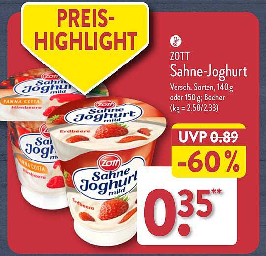 Sehen Sie sich das Zott Sahne-Joghurt Angebot bei Aldi Nord an! Dieses fantastische Angebot ist jetzt im neuesten Aldi Nord Prospekt verfügbar. Nutzen Sie diese Chance und sparen Sie viel bei Ihrem Einkauf.