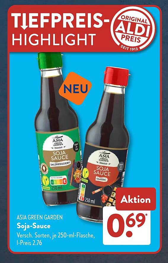 Sehen Sie sich jetzt das ASIA GREEN GARDEN Soja-Sauce 250 ml Angebot im Aldi Süd Prospekt an. Dieses Angebot ist gültig von 21.07.2025 bis 27.07.2025.