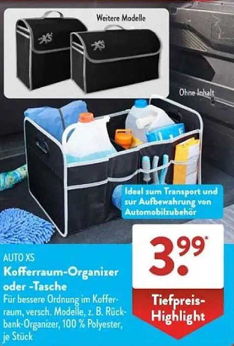 Sehen Sie sich das Auto Xs Kofferraum-Organizer Oder -Tasche Angebot bei Aldi Süd an! Dieses fantastische Angebot ist jetzt im neuesten Aldi Süd Prospekt verfügbar. Nutzen Sie diese Chance und sparen Sie viel bei Ihrem Einkauf.