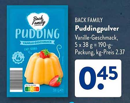 Sehen Sie sich jetzt das BACK FAMILY Puddingpulver Vanille-Geschmack, 5 x 38 g Angebot im Aldi Süd Prospekt an. Dieses Angebot ist gültig von 14.04.2025 bis 20.04.2025.
