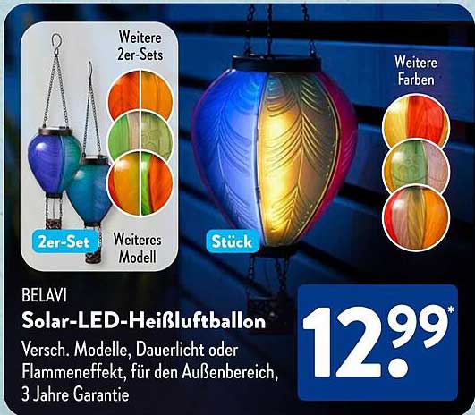 Sehen Sie sich jetzt das BELAVI Solar-LED-Heißluftballon Angebot im Aldi Süd Prospekt an. Dieses Angebot ist gültig von 28.04.2025 bis 04.05.2025.