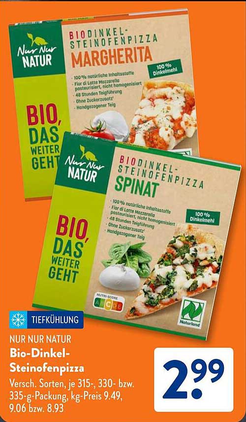 Sehen Sie sich jetzt das Bio-Dinkel-Steinoffenpizza Margherita und Spinat Angebot im Aldi Süd Prospekt an. Dieses Angebot ist gültig von 22.04.2025 bis 27.04.2025.