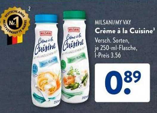 Sehen Sie sich jetzt das Crème à la Cuisine Angebot im Aldi Süd Prospekt an. Dieses Angebot ist gültig von 14.10.2024 bis 19.10.2024.