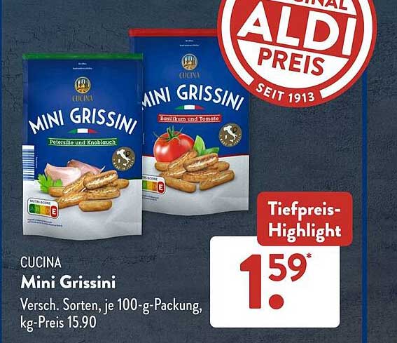 Sehen Sie sich das Cucina Mini Grissini Angebot bei Aldi Süd an! Dieses fantastische Angebot ist jetzt im neuesten Aldi Süd Prospekt verfügbar. Nutzen Sie diese Chance und sparen Sie viel bei Ihrem Einkauf.