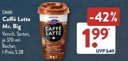 Entdecken Sie das großartige Emmi Caffè Latte Mr. Big Angebot im neuesten Aldi Süd Prospekt. Neben diesem Angebot finden Sie noch viele weitere attraktive Rabatte. Sie können das Emmi Caffè Latte Mr. Big einfach online über die Aldi Süd Website bestellen oder in einem Geschäft in Ihrer Nähe kaufen.