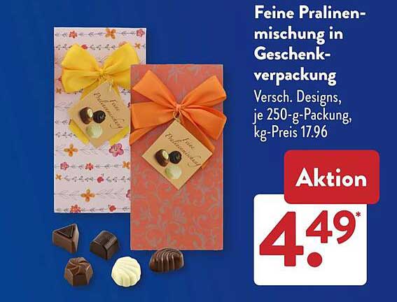Sehen Sie sich jetzt das Feine Pralinenmischung in Geschenkverpackung Angebot im Aldi Süd Prospekt an. Dieses Angebot ist gültig von 07.04.2025 bis 13.04.2025.