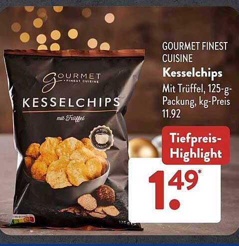 Sehen Sie sich jetzt das Kesselchips Angebot im Aldi Süd Prospekt an. Dieses Angebot ist gültig von 02.12.2024 bis 08.12.2024.
