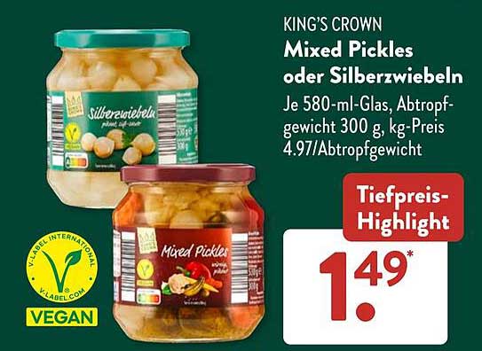 King's Crown Mixed Pickles Oder Silberzwiebeln Angebot bei Aldi Süd