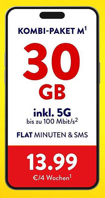 Sehen Sie sich das Kombi-Paket M1 30 Gb Angebot bei Aldi Süd an! Dieses fantastische Angebot ist jetzt im neuesten Aldi Süd Prospekt verfügbar. Nutzen Sie diese Chance und sparen Sie viel bei Ihrem Einkauf.