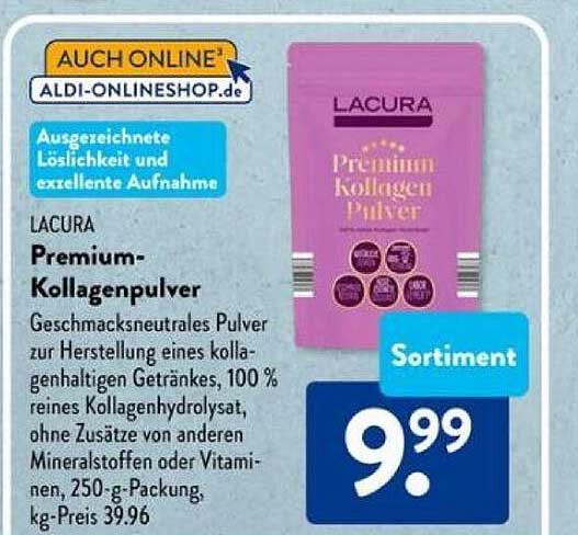 Sehen Sie sich das Lacura Premium-Kollagenpulver Angebot bei Aldi Süd an! Dieses fantastische Angebot ist jetzt im neuesten Aldi Süd Prospekt verfügbar. Nutzen Sie diese Chance und sparen Sie viel bei Ihrem Einkauf.