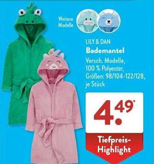 Entdecken Sie das großartige Lily & Dan Bademantel Angebot im neuesten Aldi Süd Prospekt. Neben diesem Angebot finden Sie noch viele weitere attraktive Rabatte. Sie können das Lily & Dan Bademantel einfach online über die Aldi Süd Website bestellen oder in einem Geschäft in Ihrer Nähe kaufen.