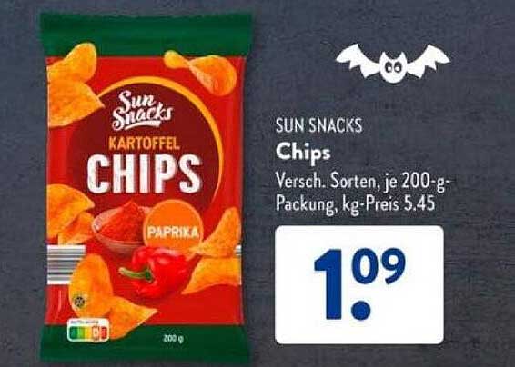 Sehen Sie sich das Sun Snacks Kartoffel Chips Angebot bei Aldi Süd an! Dieses fantastische Angebot ist jetzt im neuesten Aldi Süd Prospekt verfügbar. Nutzen Sie diese Chance und sparen Sie viel bei Ihrem Einkauf.