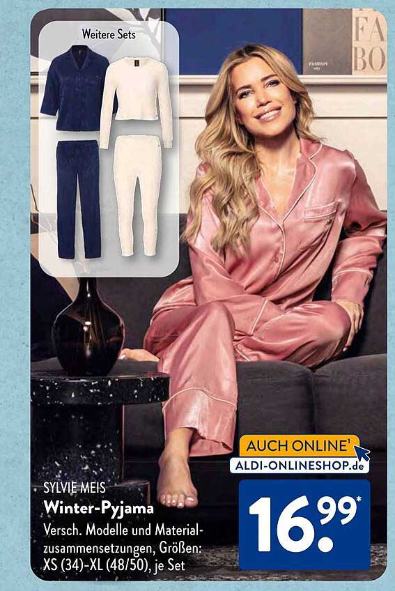 Sehen Sie sich das Sylvie Meis Winter-Pyjama Angebot bei Aldi Süd an! Dieses fantastische Angebot ist jetzt im neuesten Aldi Süd Prospekt verfügbar. Nutzen Sie diese Chance und sparen Sie viel bei Ihrem Einkauf.