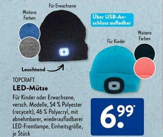 Sehen Sie sich das Topcraft Led-Mütze Angebot bei Aldi Süd an! Dieses fantastische Angebot ist jetzt im neuesten Aldi Süd Prospekt verfügbar. Nutzen Sie diese Chance und sparen Sie viel bei Ihrem Einkauf.