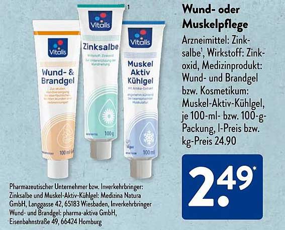 Entdecken Sie die Vorteile der Wund- und Muskelpflege mit unseren hochwertigen Produkten von Vitalis. Diese Angebote sind perfekt für diejenigen, die auf der Suche nach effektiven Lösungen zur Unterstützung ihrer Haut- und Muskelgesundheit sind. Von der Zinksalbe bis zum Muskel Aktiv Kühlgel – hier finden Sie genau das, was Sie benötigen, um sich wohlzufühlen.