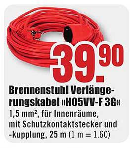 Sehen Sie sich jetzt das Brennenstuhl Verlängerungskabel »HO5VV-F 3G« Angebot im B1 Discount Baumarkt Prospekt an. Dieses Angebot ist gültig von 20.09.2025 bis 26.09.2025.