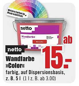 Die richtige Wandfarbe kann Ihr Zuhause in einen gemütlichen Rückzugsort verwandeln. Das Angebot für die Wandfarbe »Color« von Netto, erhältlich ab 15,- Euro, stellt eine hervorragende Gelegenheit dar, Ihrem Wohnraum frische Farben zu verleihen. Diese vielseitige Farbe ist auf Dispersionsbasis und eignet sich hervorragend für diverse Anwendungsbereiche, sei es im Wohnbereich, im Schlafzimmer oder sogar im Büro.