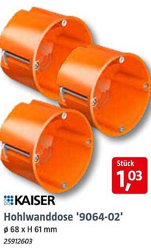 Die Hohlwanddose '9064-02' von Kaiser ist die ideale Lösung für alle, die ihre elektrischen Installationen sicher und effizient durchführen möchten. Ob im Neubau oder bei Renovierungsarbeiten – mit dieser Hohlwanddose gestalten Sie die Installation von Lichtschaltern und Steckdosen problemlos. Die leuchtende orange Farbe sorgt zudem für eine hohe Sichtbarkeit während der Montage.