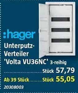 Sehen Sie sich jetzt das Unterputz-Verteiler 'Volta VU36NC' 3-reihig Angebot im Bauhaus Prospekt an. Dieses Angebot ist gültig von 04.10.2025 bis 01.11.2025.