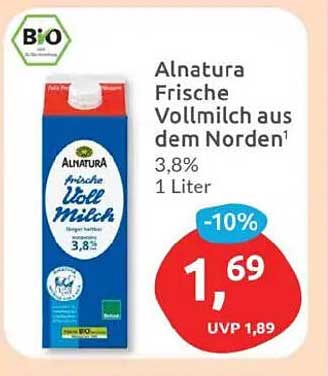 Mit einem aktuellen Angebotspreis von nur 1,69 € statt der unverbindlichen Preisempfehlung von 1,89 € sparen Sie 10%. Dies macht die Alnatura Frische Vollmilch zu einem besonders attraktiven Schnäppchen, das Sie sich nicht entgehen lassen sollten. Genießen Sie den milden Geschmack und die hohe Qualität zu einem unschlagbaren Preis.